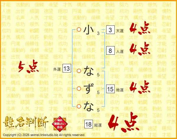 小なずなさんの総運は18画の4点!
