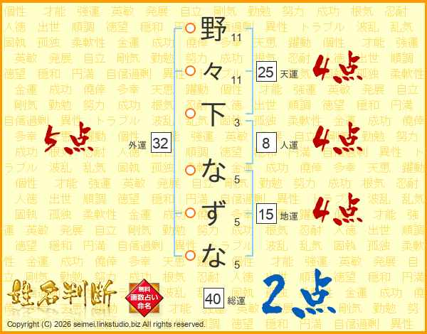野々下なずなさんの総運は40画の2点!