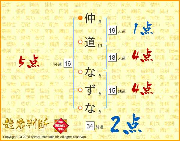仲(6画)道(13画) な(5画)ず(5画)な(5画)
