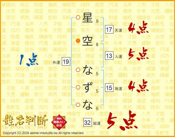 星(9画)空(8画) な(5画)ず(5画)な(5画)
