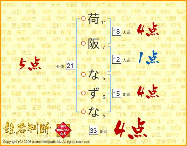 荷阪なずなさんの外運は21画の5点!