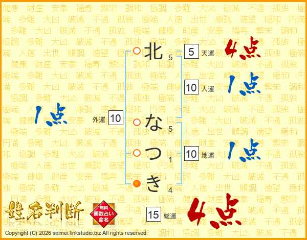 北なつきさんの総運は15画の4点!