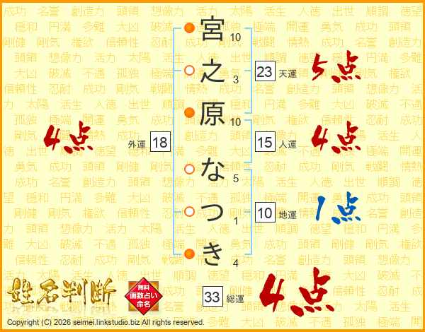 宮(10画)之(3画)原(10画) な(5画)つ(1画)き(4画)