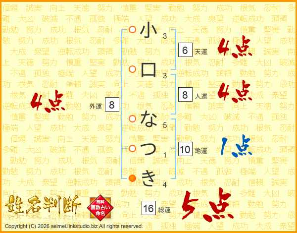 小口なつきさんの総運は16画の5点!