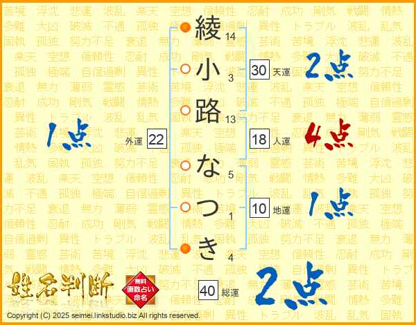 綾小路なつきさんの総運は40画の2点!