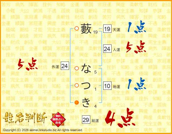 藪なつきさんの総運は29画の4点!