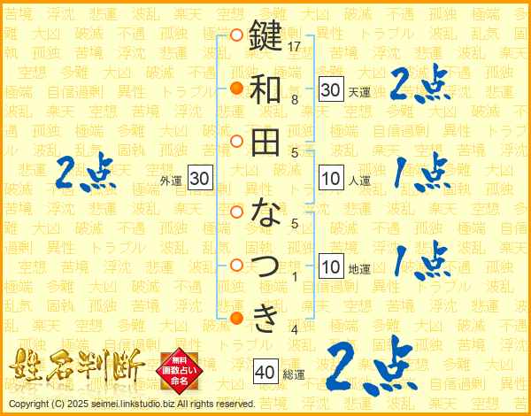 鍵和田なつきさんの総運は40画の2点!