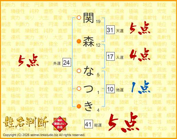 関森なつきさんの総運は41画の5点!