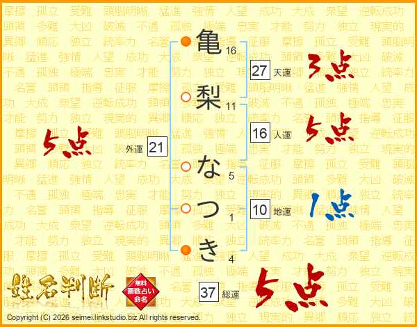 亀梨なつきさんの総運は37画の5点!