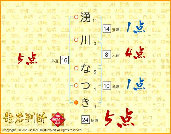 湧川なつきさんの総運は24画の5点!