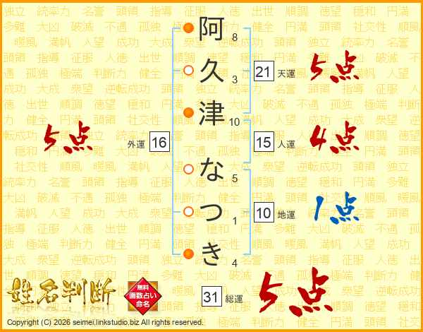 阿久津なつきさんの天運は21画の5点!