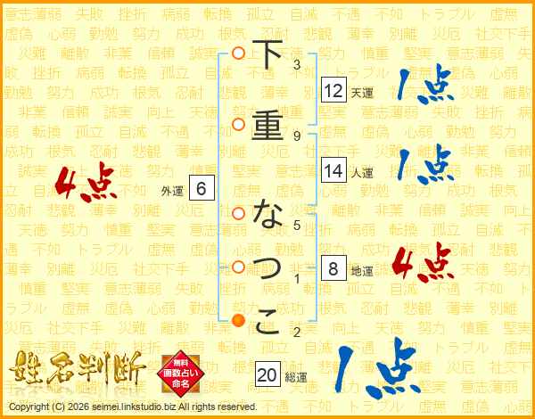 下(3画)重(9画) な(5画)つ(1画)こ(2画)