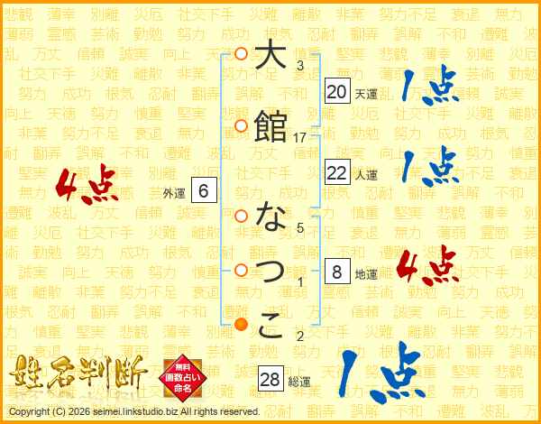 大館なつこさんの総運は28画の1点!