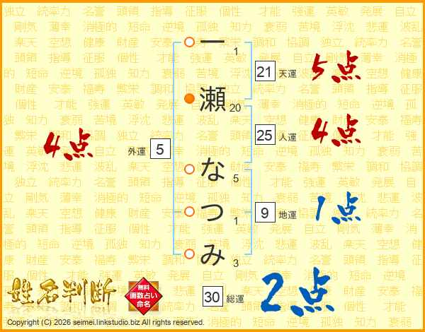 一瀬なつみさんの人運は25画の4点!