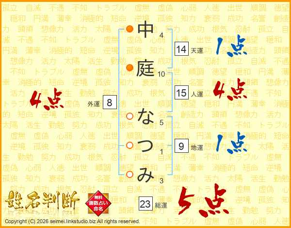 中庭なつみさんの総運は23画の5点!