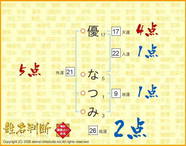 優なつみさんの総運は26画の2点!