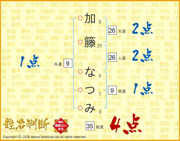 加籐なつみさんの総運は35画の4点!