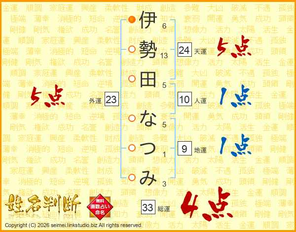 伊勢田なつみさんの総運は33画の4点!