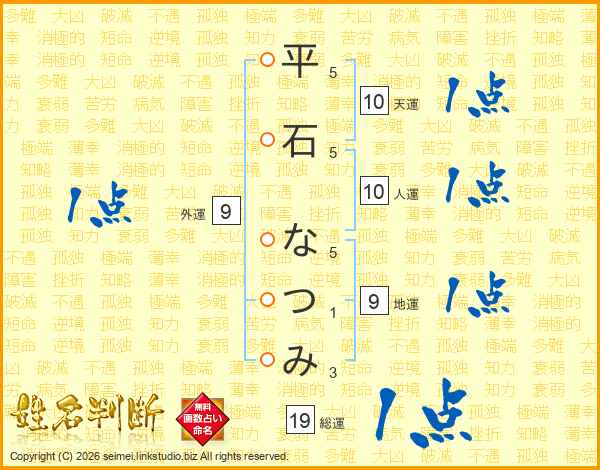 平石なつみさんの総運は19画の1点!