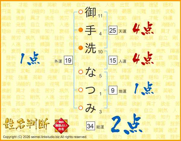 御手洗なつみさんの総運は34画の2点!