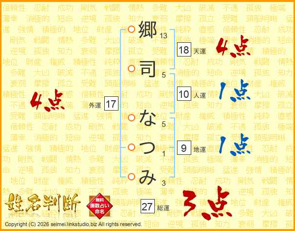 郷司なつみさんの総運は27画の3点!