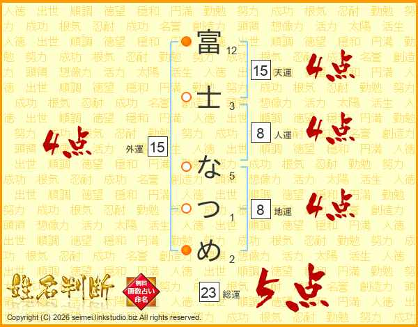 富(12画)士(3画) な(5画)つ(1画)め(2画)