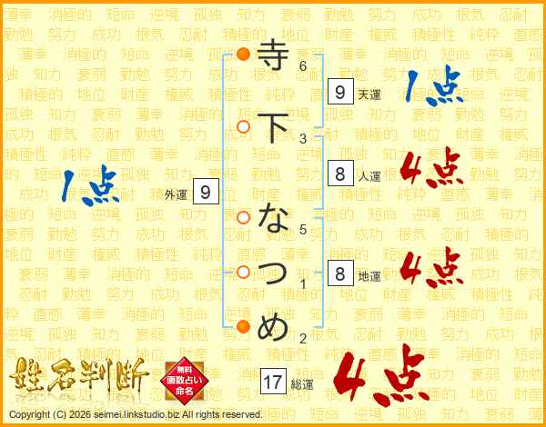 寺下なつめさんの総運は17画の4点!
