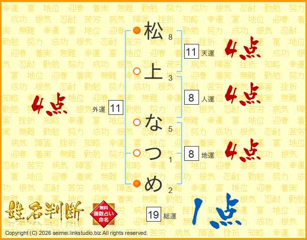 松上なつめさんの総運は19画の1点!