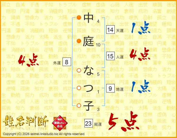 中(4画)庭(10画) な(5画)つ(1画)子(3画)