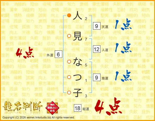 人(2画)見(7画) な(5画)つ(1画)子(3画)