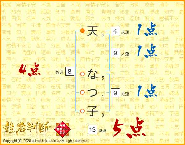 天なつ子さんの総運は13画の5点!