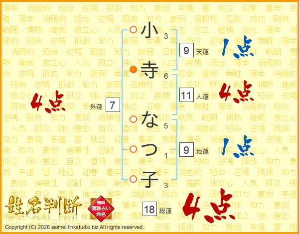 小寺なつ子さんの外運は7画の4点!