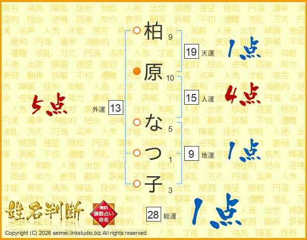 柏原なつ子さんの総運は28画の1点!