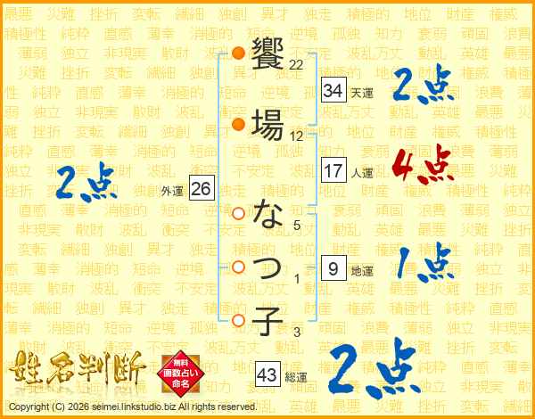 饗場なつ子さんの総運は43画の2点!