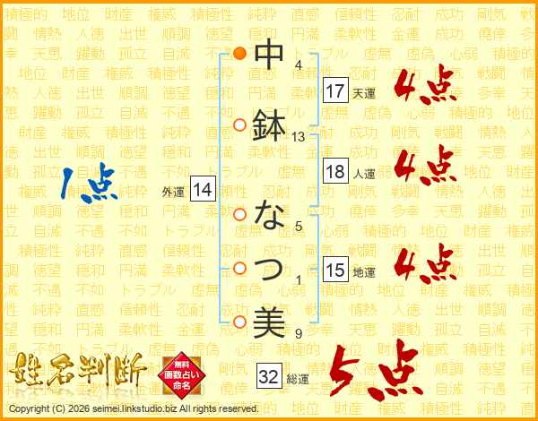 中鉢なつ美さんの総運は32画の5点!