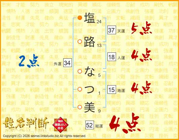 塩路なつ美さんの総運は52画の4点!