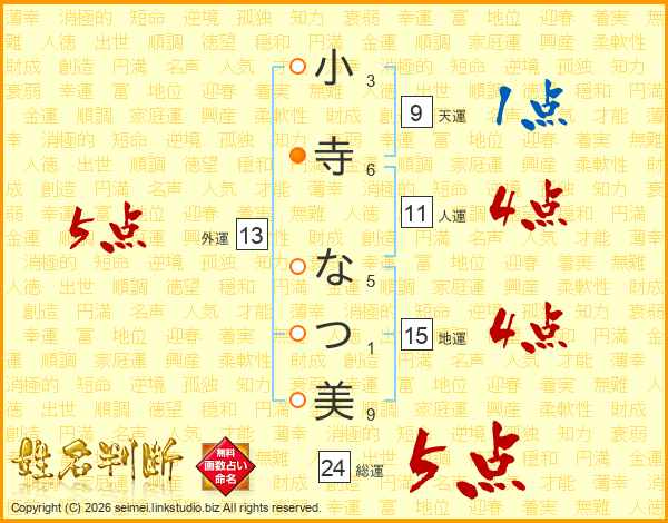 小寺なつ美さんの外運は13画の5点!