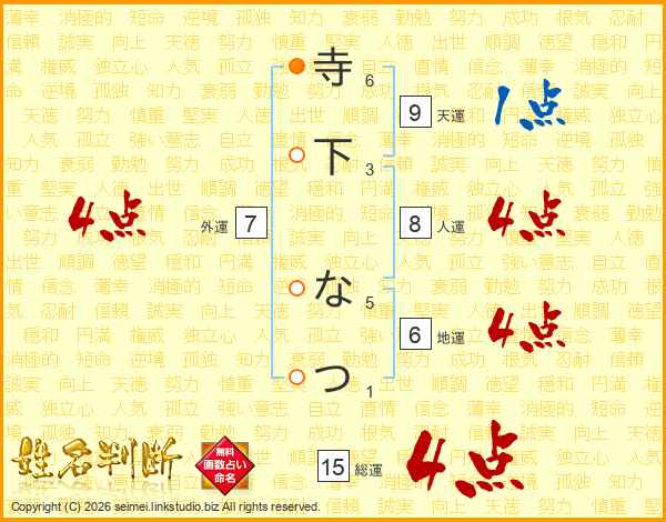 寺下なつさんの総運は15画の4点!