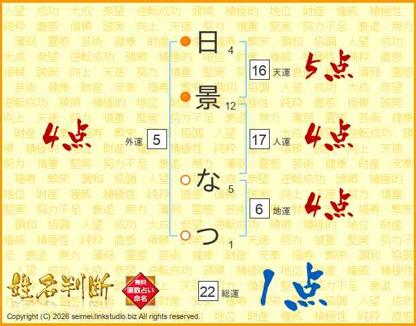 日景なつさんの総運は22画の1点!