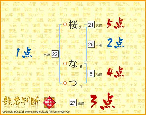 桜なつさんの天運は21画の5点!