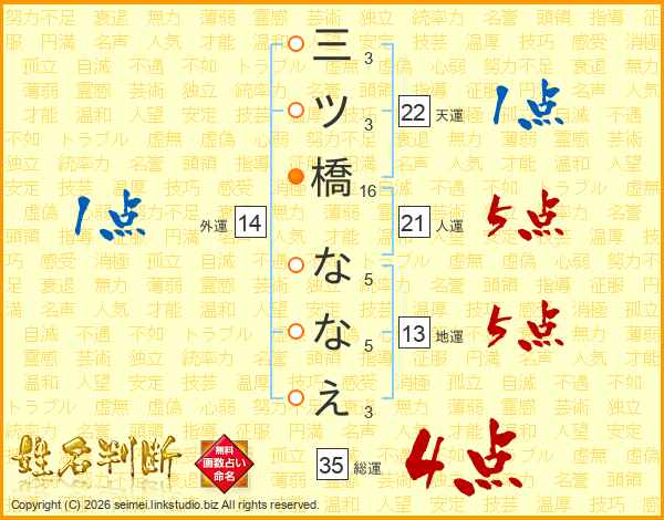 三(3画)ツ(3画)橋(16画) な(5画)な(5画)え(3画)