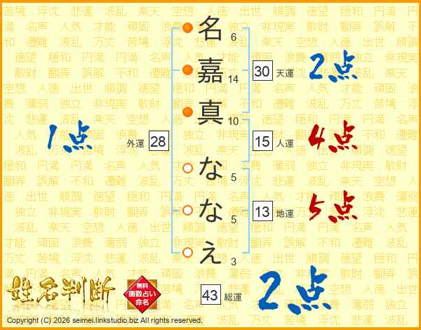 名嘉真ななえさんの天運は30画の2点!