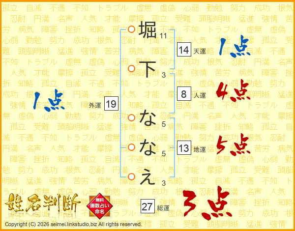 堀(11画)下(3画) な(5画)な(5画)え(3画)