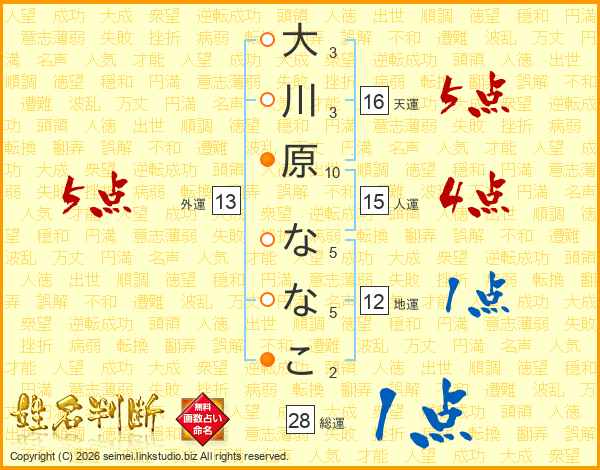 大川原ななこさんの天運は16画の5点!