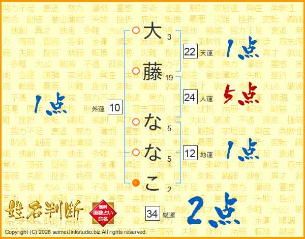大藤ななこさんの人運は24画の5点!