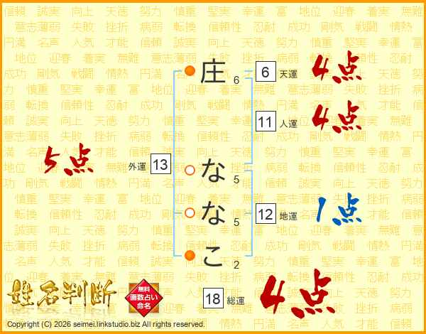 庄ななこさんの総運は18画の4点!