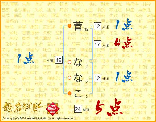 菅ななこさんの総運は24画の5点!