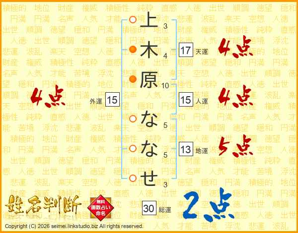 上木原ななせさんの天運は17画の4点!