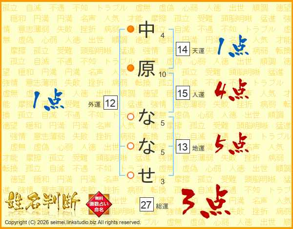 中(4画)原(10画) な(5画)な(5画)せ(3画)