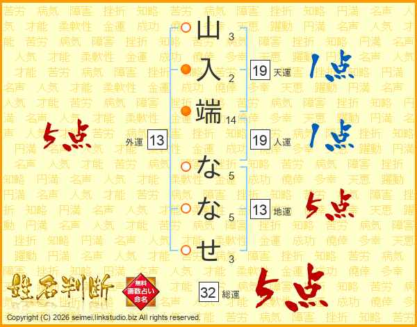 山(3画)入(2画)端(14画) な(5画)な(5画)せ(3画)